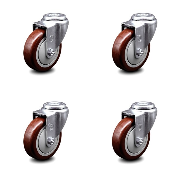 4 Inch Maroon Polyurethane Wheel Swivel Bolt Hole Caster Set