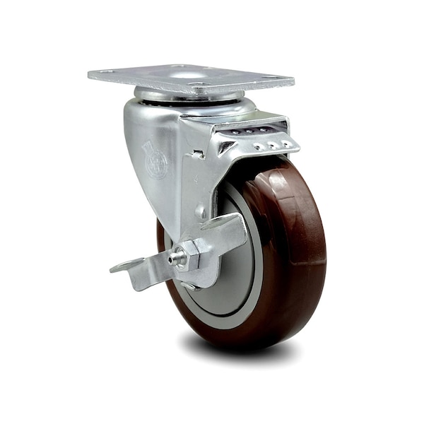 4 Inch Maroon Polyurethane Wheel Swivel Top Plate Caster with Brake SCC