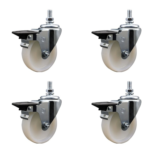 4 Inch Nylon 10 MM Threaded Stem Caster Set with Brake