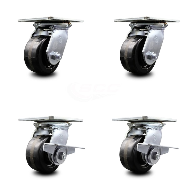 4 Inch Phenolic Swivel Caster Set with Roller Bearings 2 Brakes