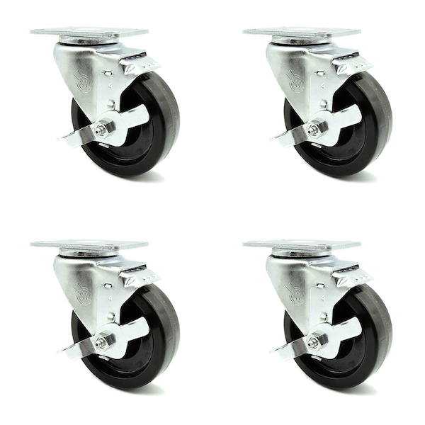 4 Inch Phenolic Wheel Swivel Top Plate Caster Set with Brake