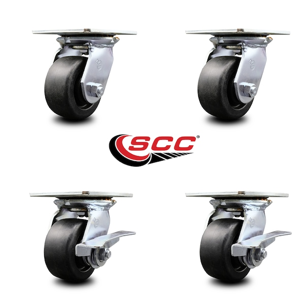 Listing is for a set of four (4) Service Caster Series #35 swivel casters, two (2) with side locking brakes, with 4" diameter by 2" wide polyolefin wheels capable of supporting a total weight of 2,000 lbs. (500 lbs./caster). When searching for a reliable and durable solution to your caster needs, consider Service Caster Series 35 polyolefin wheel casters. The Service Caster Series #35 features light weight polyolefin wheels that are resistant to shock, chemicals and abrasion, and finely crafted with a bright zinc plated finish and heat-treated ball bearing raceway. These versatile casters are ideal for a wide range of applications, such as dollies, platform trucks, warehouse carts and freight terminals. Or ensure a smooth and secure ride for food service carts, hotel housekeeping carts, and industrial and commercial equipment. Even drywall carts, welding carts, and wall panel carts will be ready to roll on the Series 35, keeping you moving forward.