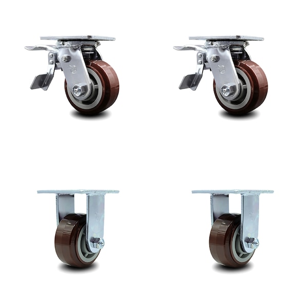 4 Inch Polyurethane Caster Set with Roller Bearing 2 Brakes 2 Rigid SCC