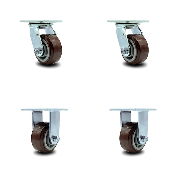 4 Inch Polyurethane Caster Set with Roller Bearings 2 Swivel Lock 2 Rigid SCC