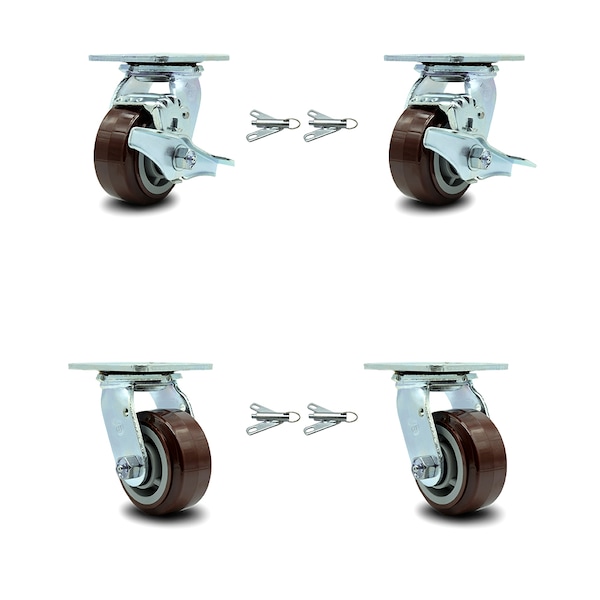 4 Inch Polyurethane Caster Set with Roller Bearings 4 Swivel Lock 2 Brake SCC