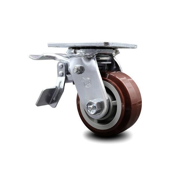 4 Inch Polyurethane Swivel Caster with Roller Bearing and Total Lock Brake SCC