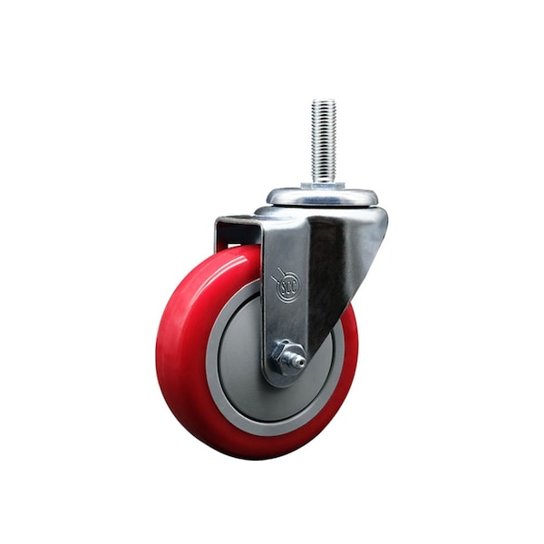 4 Inch Red Polyurethane Wheel Swivel 58 Inch Threaded Stem Caster Service Caster