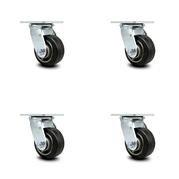 4 Inch Rubber on Aluminum Caster Set with Roller Bearing and Swivel Lock SCC