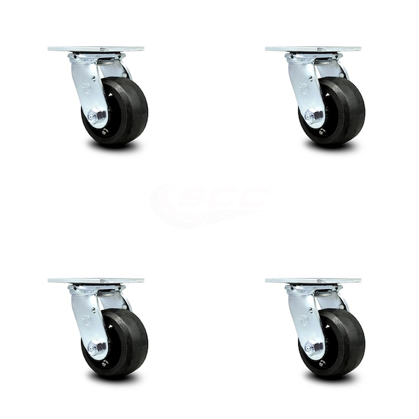 4 Inch Rubber on Steel Wheel Swivel Caster Set with Roller Bearings SCC