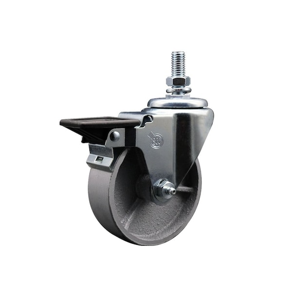 Listing is for one 1 Service Caster Series 20 swivel caster with a 4 diameter by 114 wide semi steel cast iron wheel and a 10MM threaded stem with brake capable of supporting 300 lbscaster When searching for a reliable and durable solution to your caster needs, consider Service Casters Series 20 sleeve bearing semisteel cast iron casters The Service Caster Series 20 is ideal for light and medium duty material handling, carts, equipment, and shop projects The zinc plated finish provides durability under any condition, while the semisteel wheels are abrasion resistant and rugged, maintaining effortless rolling under heavier loads, and provides a costeffective solution over steel wheels Sleeve bearings provide a metal sleeve inserted in a wheel to rest directly on the axle This option is only recommended when rolling ease is less critical Mounting options include top plate, bolt hole and standard and metric threaded stem sizes