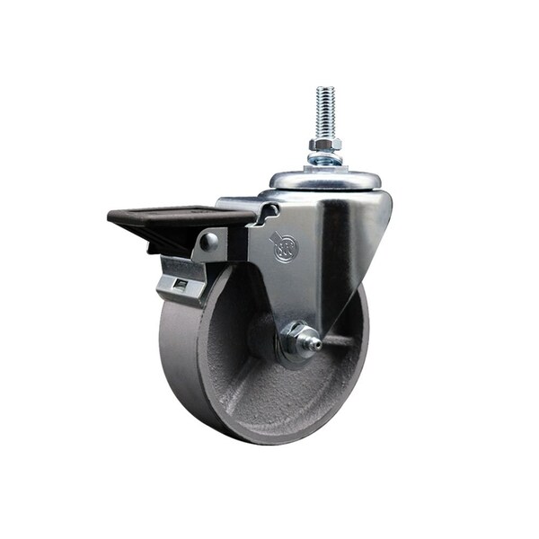 Listing is for one 1 Service Caster Series 20 swivel caster with a 4 diameter by 112 wide semi steel cast iron wheel and a 12MM threaded stem with brake capable of supporting 300 lbscaster When searching for a reliable and durable solution to your caster needs, consider Service Casters Series 20 roller bearing semisteel cast iron casters The Service Caster Series 20 is ideal for light and medium duty material handling, carts, equipment, and shop projects The zinc plated finish provides durability under any condition, while the semisteel wheels are abrasion resistant and rugged, maintaining effortless rolling under heavier loads, and provides a costeffective solution over steel wheels The roller bearing is capable of carrying greater loads while also providing smoother rolling motion It has a split outer race shell into which the roller assembly is inserted Combination sealthrust retainer washers protect the bearing from dirt, water, and chemicals They also help absorb thrust friction Note roller bearing must be used with hardened spanner bushing or hardened shaft Mounting options include top plate, bolt hole and standard and metric threaded stem sizes