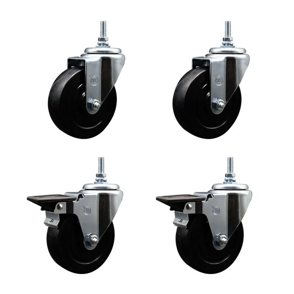 4 Inch Soft Rubber 38 Inch Threaded Stem Caster Set 2 Brakes SCC