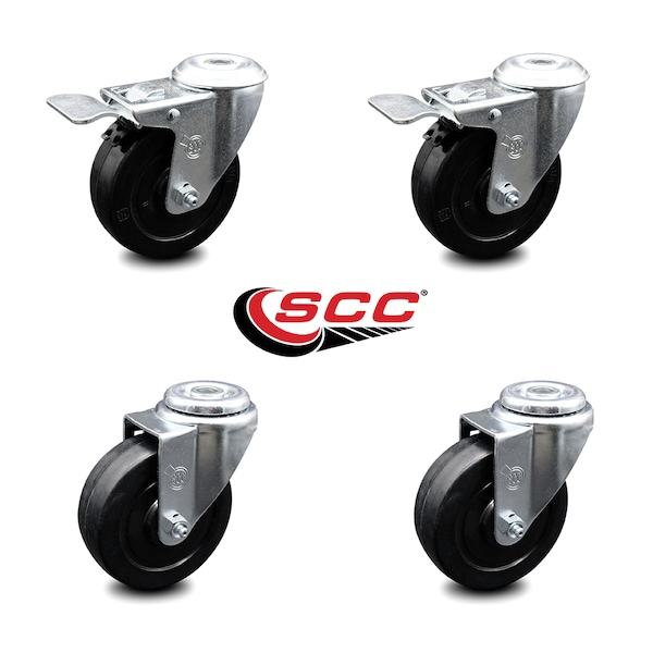 4 Inch Soft Rubber Swivel Bolt Hole Caster Set with 2 Total Lock Brake SCC