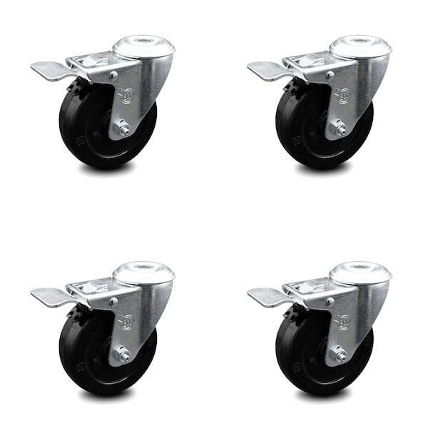4 Inch Soft Rubber Swivel Bolt Hole Caster Set with Total Lock Brake SCC
