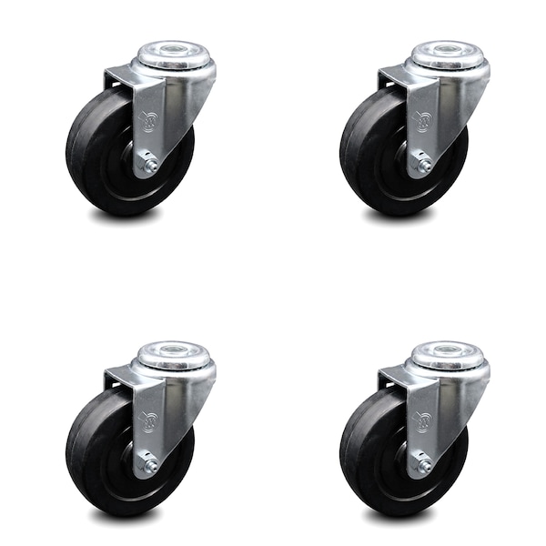 4 Inch Soft Rubber Wheel Swivel Bolt Hole Caster Set