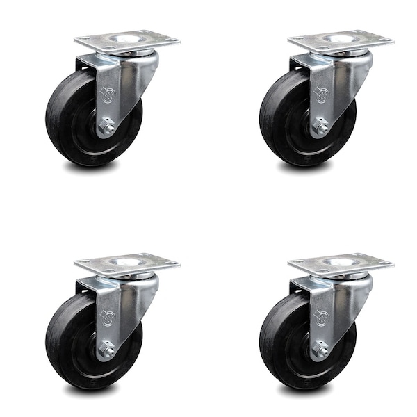 4 Inch Soft Rubber Wheel Swivel Top Plate Caster Set