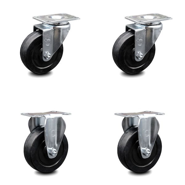 Listing is for a a set of four (4) Service Caster Series #20 casters, two (2) swivel and two (2) rigid casters, with 4" diameter by 1-1/4" wide soft rubber wheels capable of supporting a total weight of 800 lbs. (200 lbs./caster).When searching for a reliable and durable solution to your caster needs, consider Service Caster’s Series 20 soft rubber casters. The Service Caster Series #20 is ideal for light and medium duty material handling, carts, equipment, and shop projects. The zinc plated finish provides durability under any condition. The soft rubber wheels- resistant to most chemicals and oils- combine a soft tread on a hard rubber core, offering quiet movement and a cushioned ride. Mounting options include top plate, bolt hole and standard and metric threaded stem sizes. Service Caster is unsurpassed in quality, reliability, and excellent customer service. Count on us to move you forward.