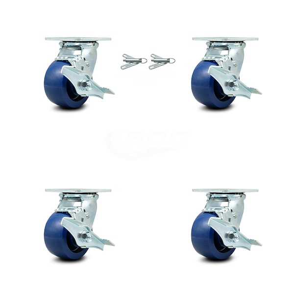 Listing is for a set of four (4) Service Caster Series #30 casters, two (2) swivel casters with side lock brakes & bolt on swivel locks and two (2) swivel casters with a side lock brakes, with 4" diameter by 2" wide solid polyurethane wheels capable of supporting a total weight of 2,800 lbs. (700 lbs./caster).When searching for a reliable and durable solution to your caster needs, consider Service Caster's Series 30 solid polyurethane wheel casters. The Service Caster Series #30 features a non-marking, non-marring polyurethane wheel. Molded as one solid piece, this wheel is free from debonding, and will not flatspot, as can occur with comparable polyurethane wheels, ensuring a smooth and solid roll over long periods of time. These versatile casters are ideal for a wide range of applications, such as dollies, platform trucks, warehouse carts and freight terminals. Or ensure a secure ride for food service carts, hotel housekeeping carts, and industrial and commercial equipment. Even drywall carts, welding carts, and wall panel carts will be ready to roll on the Series 30, keeping you moving forward. Service Caster is unsurpassed in quality, reliability, and excellent customer service. Count on us to move you forward.