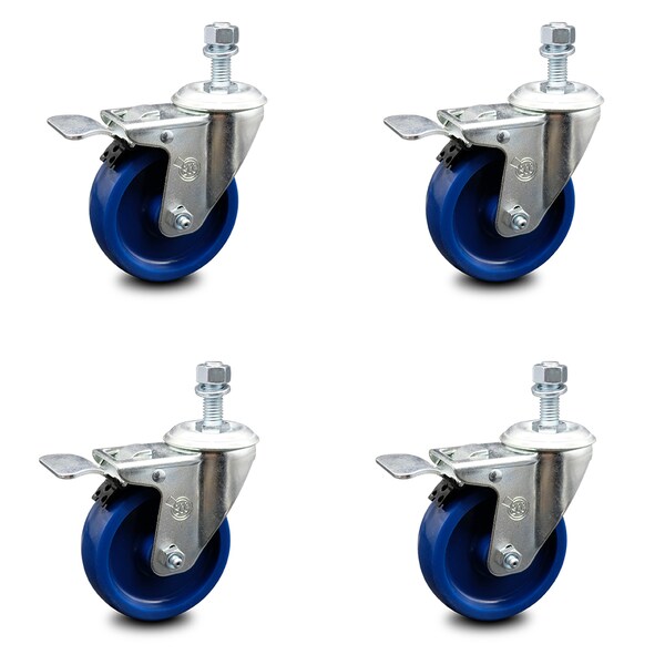 4 Inch Solid Polyurethane Swivel 10mm Stem Caster Set with Total Lock Brake