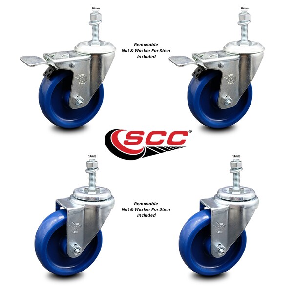 4 Inch Solid Polyurethane Swivel 10mm Stem Caster Total Lock Brake SCC, 2PK