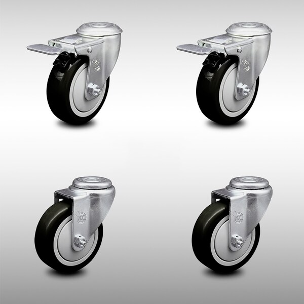 4 Inch SS Black Polyurethane Swivel Bolt Hole Caster Set with 2 Total Lock Brake