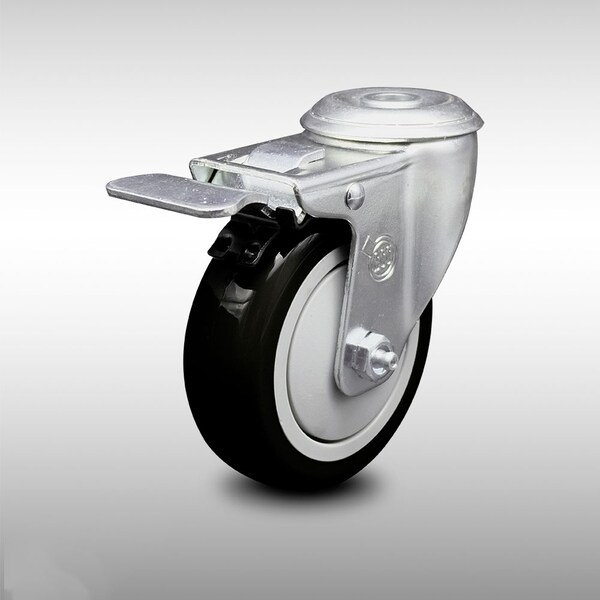 4 Inch SS Black Polyurethane Wheel Swivel Bolt Hole Caster with Total Lock Brake