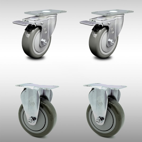 4 Inch SS Gray Polyurethane Top Plate Caster Lock Brake 2 Rigid SCC, 2PK