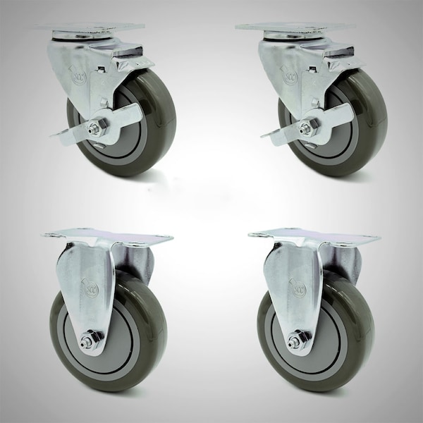 4 Inch SS Gray Polyurethane Top Plate Caster Set with 2 Brake 2 Rigid SCC
