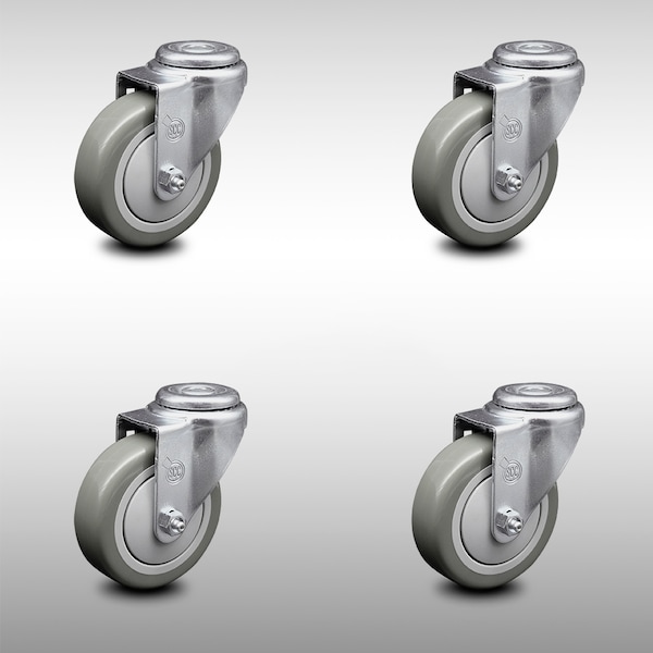 4 Inch SS Gray Polyurethane Wheel Swivel Bolt Hole Caster Set