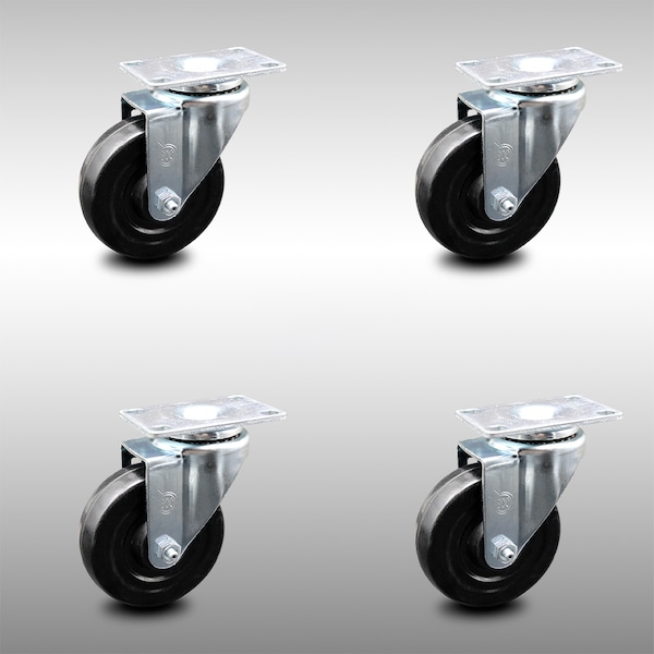 4 Inch SS Hard Rubber Wheel Swivel Top Plate Caster Set