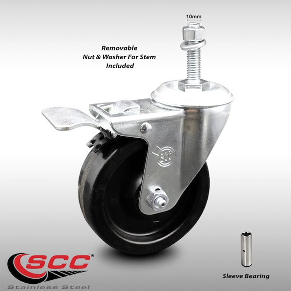 4 Inch SS Phenolic 10mm Threaded Stem Caster with Total Lock Brake SCC
