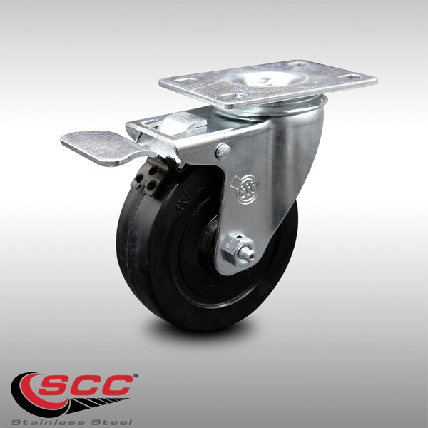 4 Inch SS Soft Rubber Top Plate Caster with Total Lock Brake