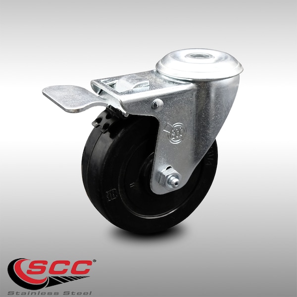 4 Inch SS Soft Rubber Wheel Swivel Bolt Hole Caster with Total Lock Brake SCC