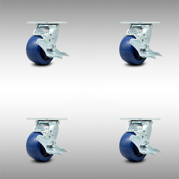 4 Inch SS Solid Poly Caster Set with Roller Bearings and Brake/Swivel Lock SCC