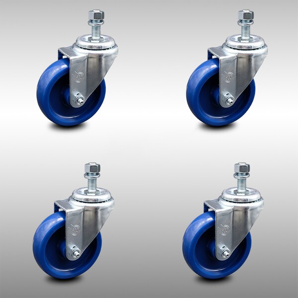 4 Inch SS Solid Polyurethane Wheel Swivel 10mm Threaded Stem Caster Set SCC