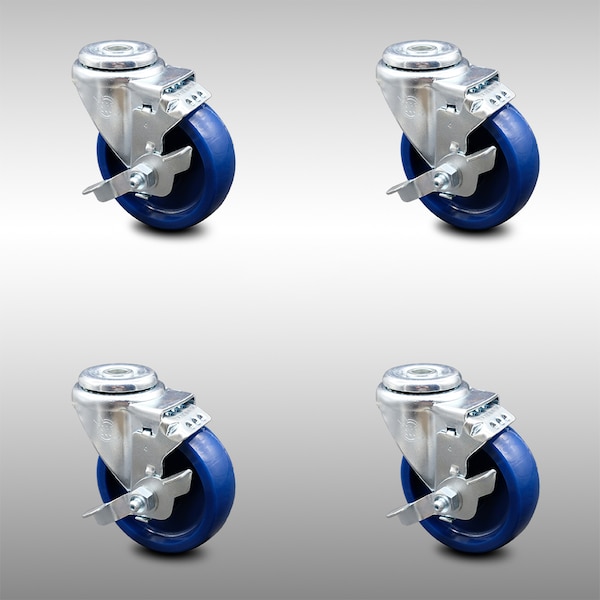 4 Inch SS Solid Polyurethane Wheel Swivel Bolt Hole Caster Set with Brake SCC