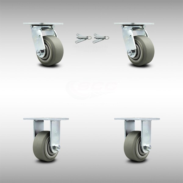 4 Inch SS Thermoplastic Caster Set with Roller Bearing 2 Swivel Lock 2 Rigid SCC