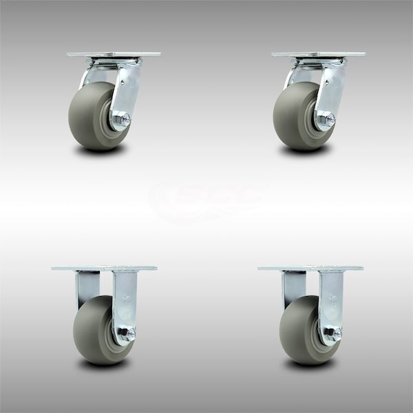 4 Inch SS Thermoplastic Rubber Caster Set with Roller Bearing 2 Swivel 2 Rigid