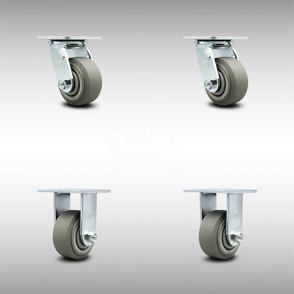4 Inch SS Thermoplastic Rubber Caster Set with Roller Bearing 2 Swivel 2 Rigid