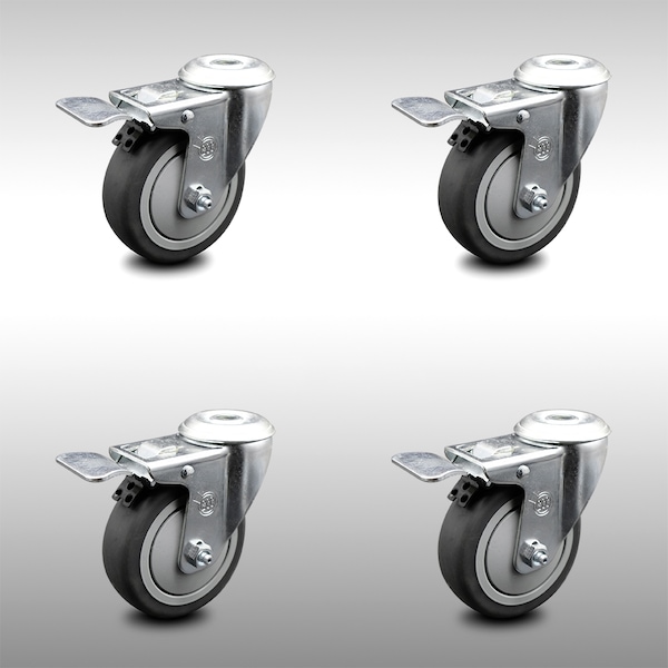 4 Inch SS Thermoplastic Rubber Swivel Bolt Hole Caster Set with Total Lock Brake