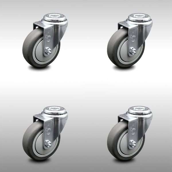 4 Inch SS Thermoplastic Rubber Wheel Swivel Bolt Hole Caster Set