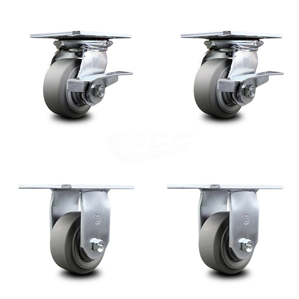 4 Inch Thermoplastic Caster Set with Roller Bearing 2 Brakes and 2 Rigid SCC