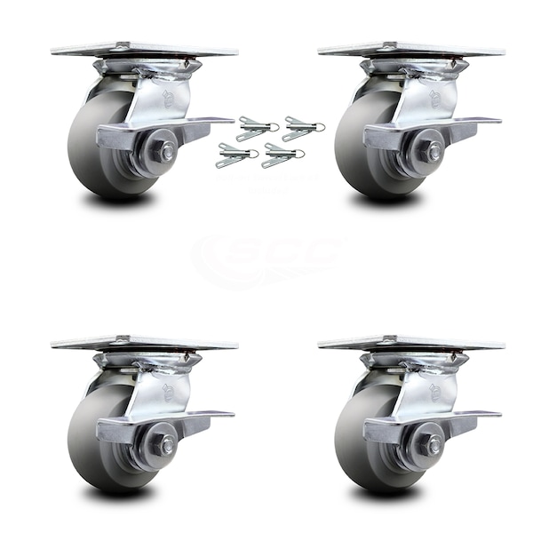 4 Inch Thermoplastic Caster Set with Roller Bearings and Brakes/Swivel Locks SCC