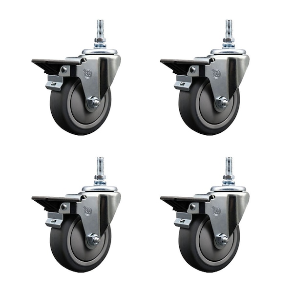 4 Inch Thermoplastic Rubber 12 MM Threaded Stem Caster Set with Brake