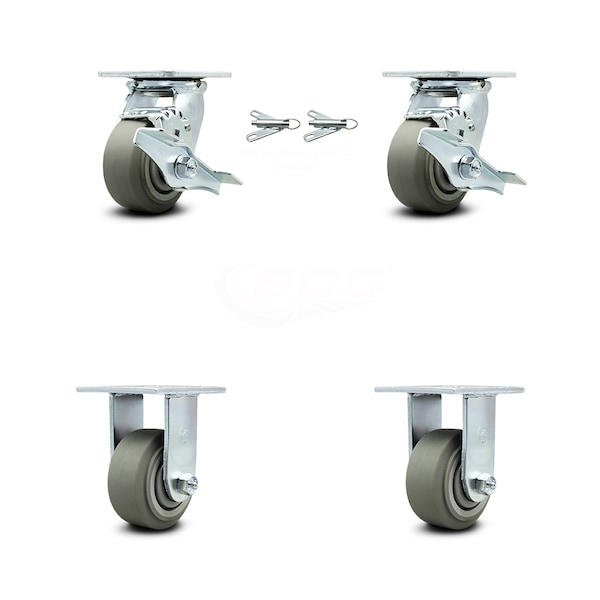 4 Inch Thermoplastic Rubber Caster Set with 2 Brakes/Swivel Lock 2 Rigid SCC