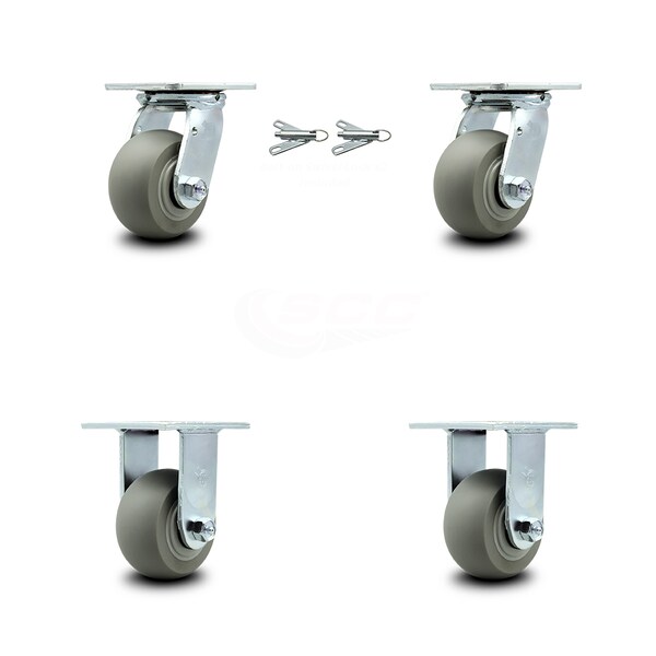 4 Inch Thermoplastic Rubber Caster Set with Roller Bearing 2 Swivel Lock 2 Rigid