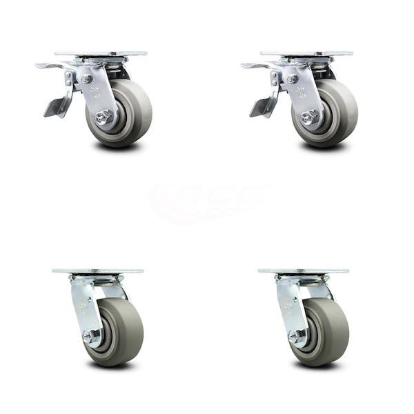 4 Inch Thermoplastic Rubber Caster Set with Roller Bearing 2 Total Lock Brake