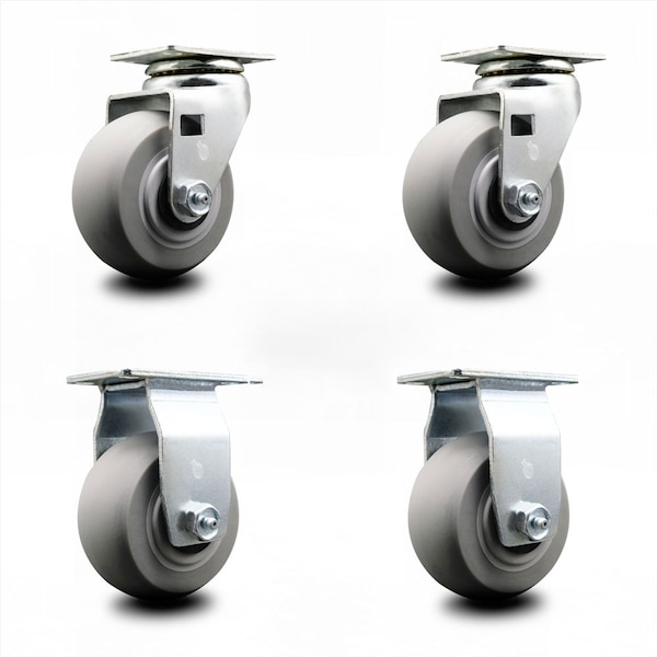 4 Inch Thermoplastic Rubber Caster Set with Roller Bearings 2 Swivel 2 Rigid