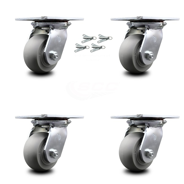 4 Inch Thermoplastic Rubber Caster Set with Roller Bearings and Swivel Locks SCC