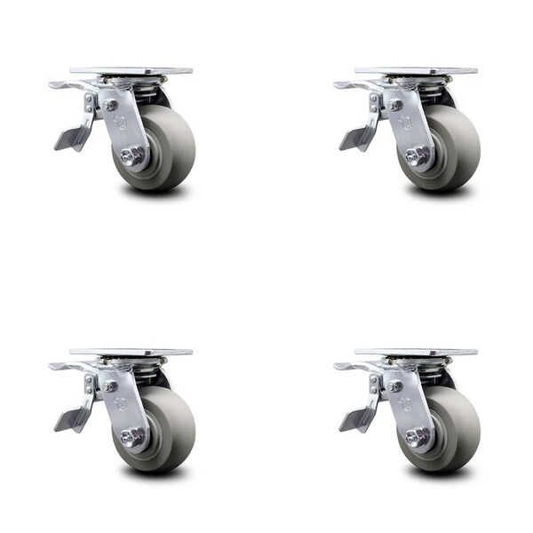 4 Inch Thermoplastic Rubber Caster Set with Roller Bearings and Total Lock Brake